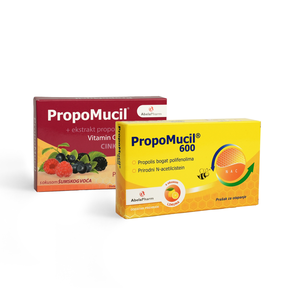 Kombinacija N-acetilcisteina i pročišćenog ekstrakta propolisa standardiziranog na 12% polifenola.